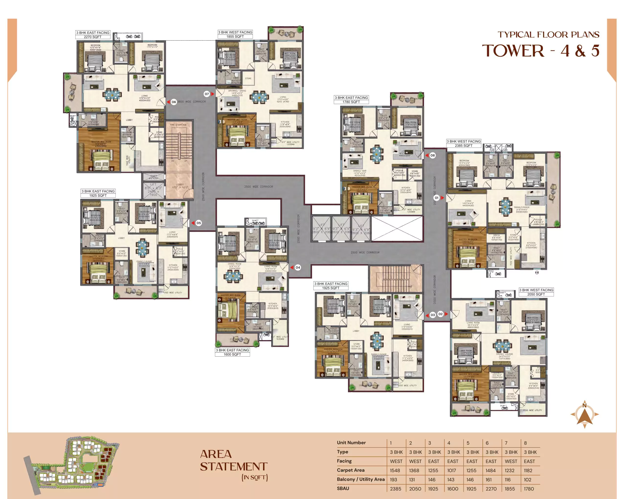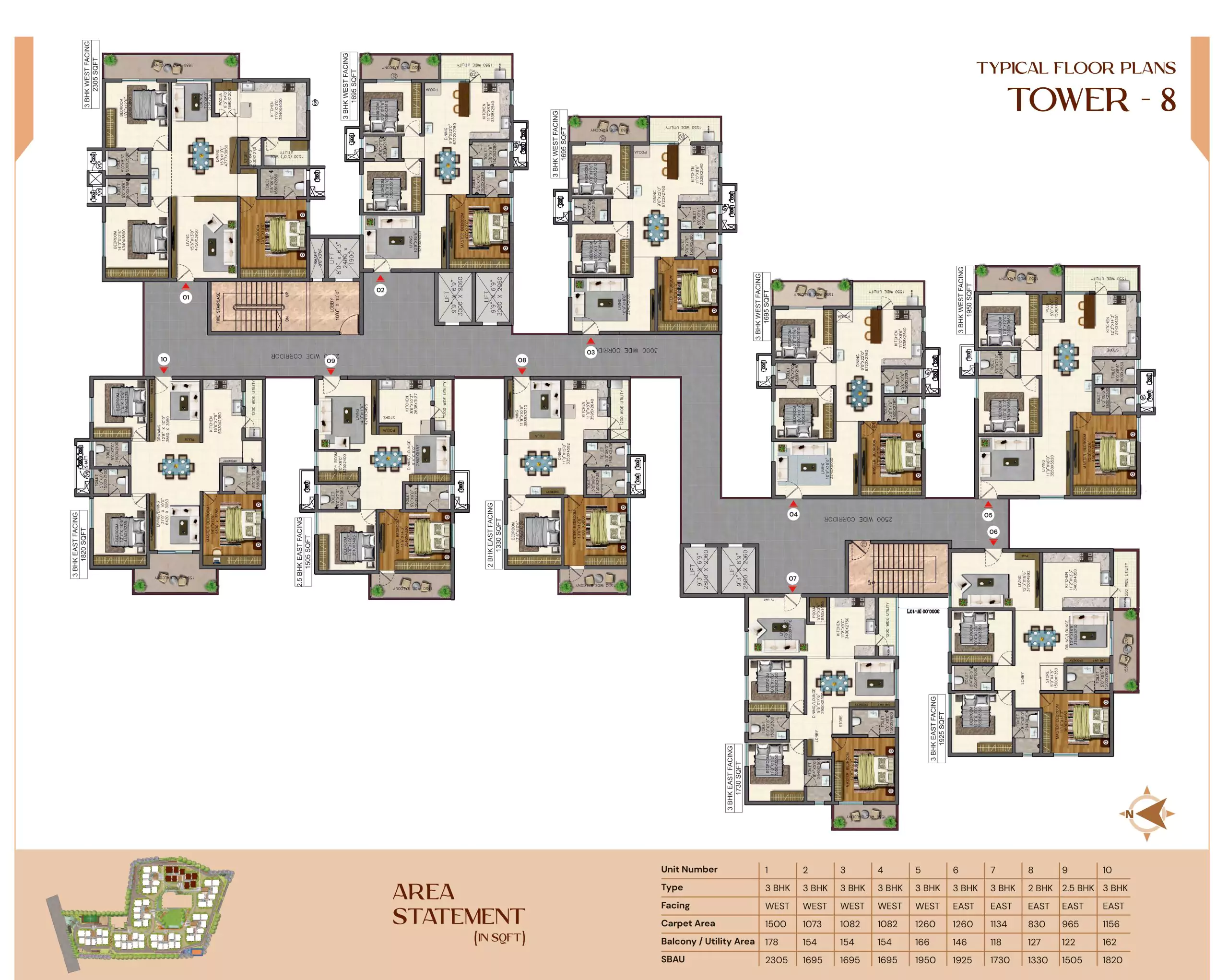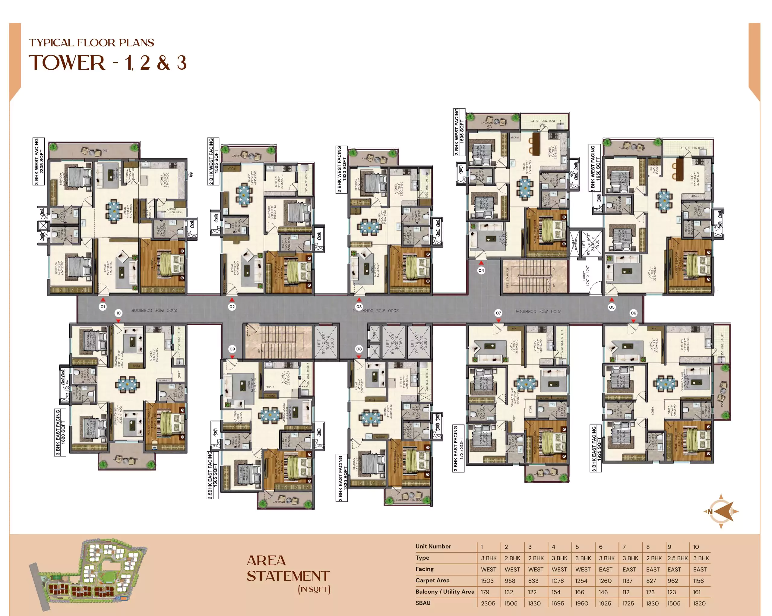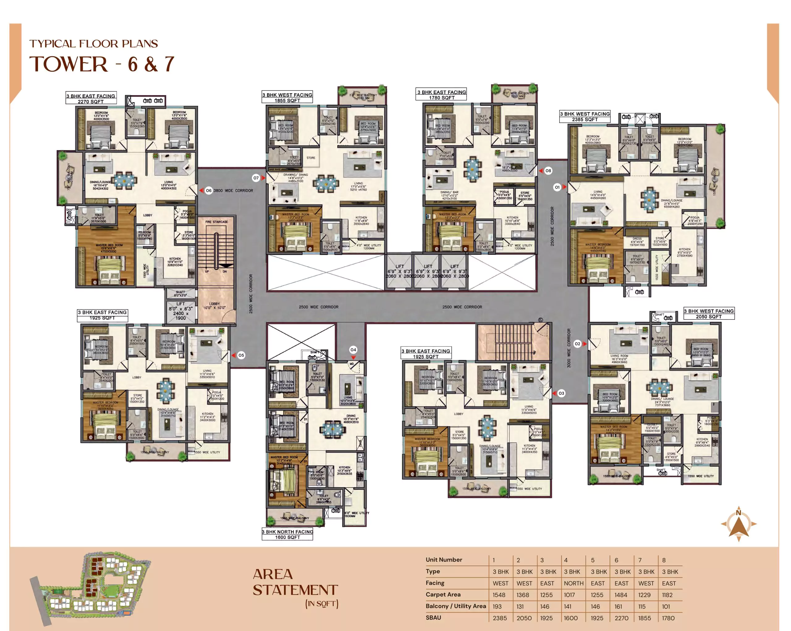 Introducing the lavish Vasavi Bhuvi at Kompally, Hyderabad, spanning over 10.65 acres with a hassle-free access from any corner of the city. With 8 towers, 17 floors each, it offers premium 2, 2.5, and 3 BHK apartments. Boasting 65% open space, the 1208-unit complex includes two opulent clubhouses covering 50,000 sqft. Immerse yourself in luxury living amid tranquil surroundings and unparalleled amenities. Experience the upscale living at our Kompally enclave, featuring premier amenities such as tennis courts, a well-equipped gym, serene meditation gardens, inviting swimming pools, and a state-of-the-art squash court.