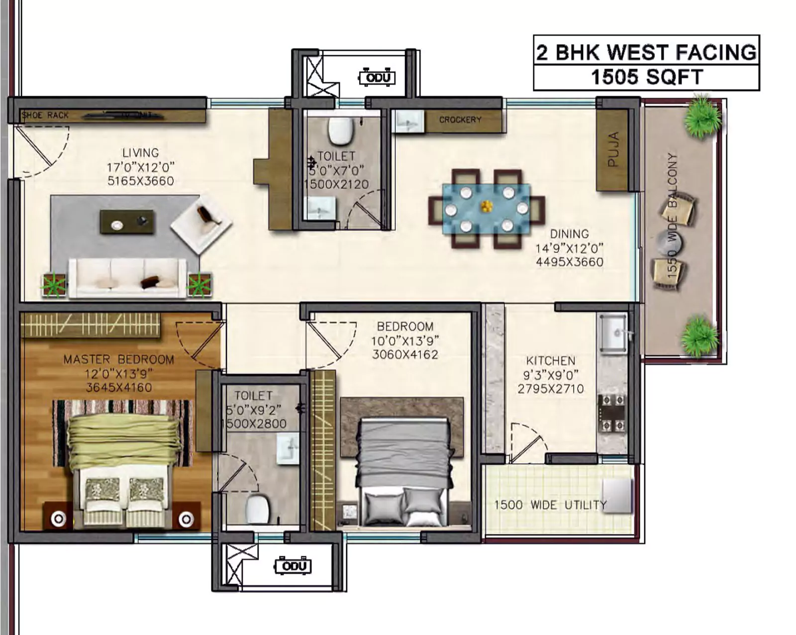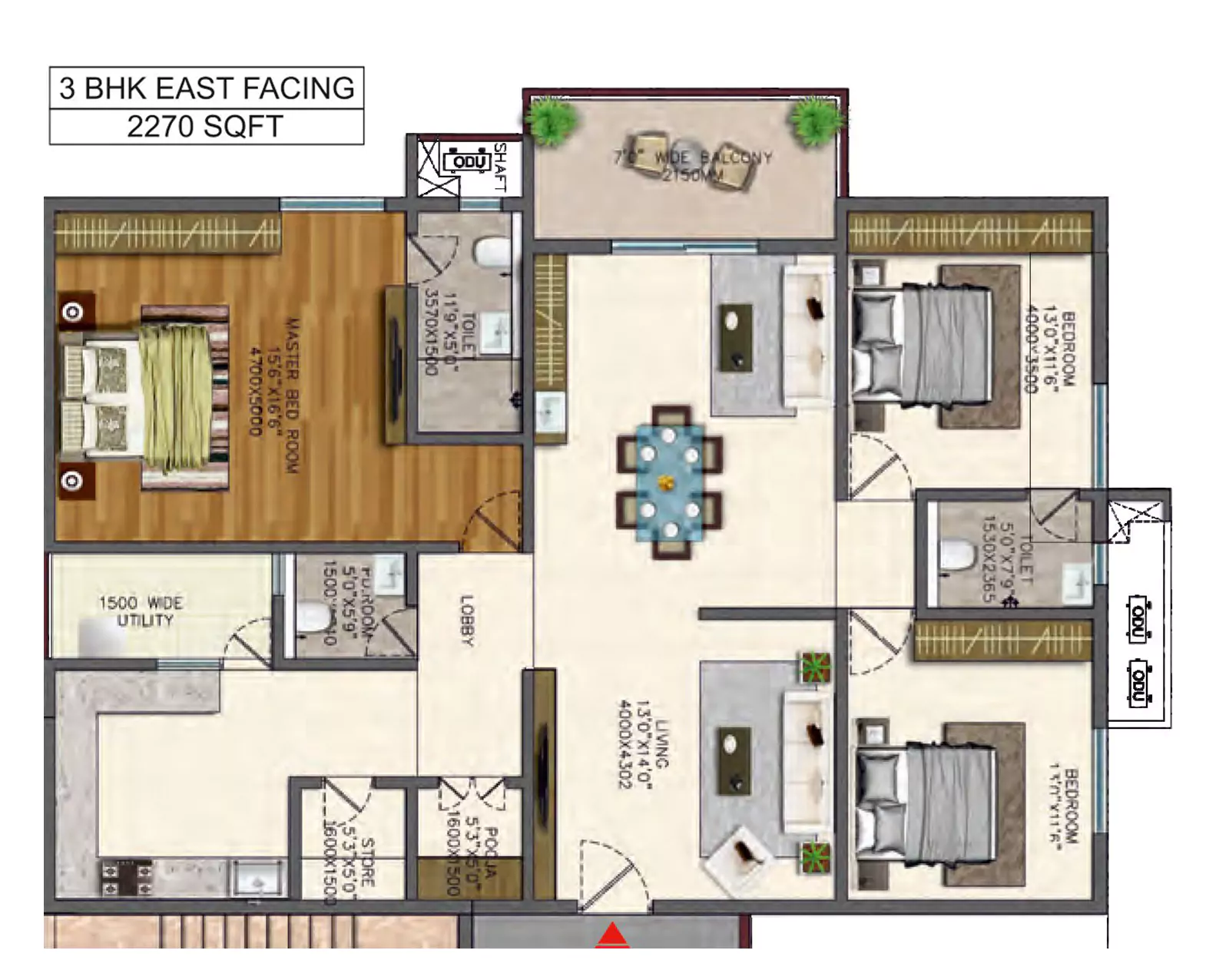 Power outlets for Chimney, Refrigerator, Mixer / Grinder in Kitchen, and Washing Machine in Utility Area